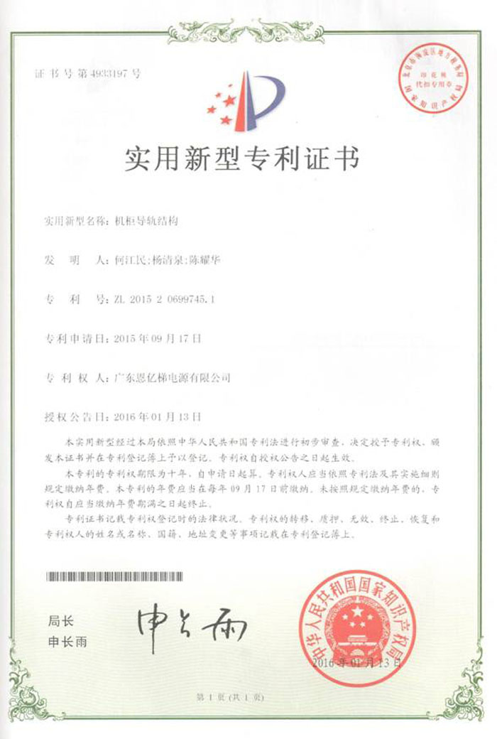 專利證書(機柜導(dǎo)軌結(jié)構(gòu))